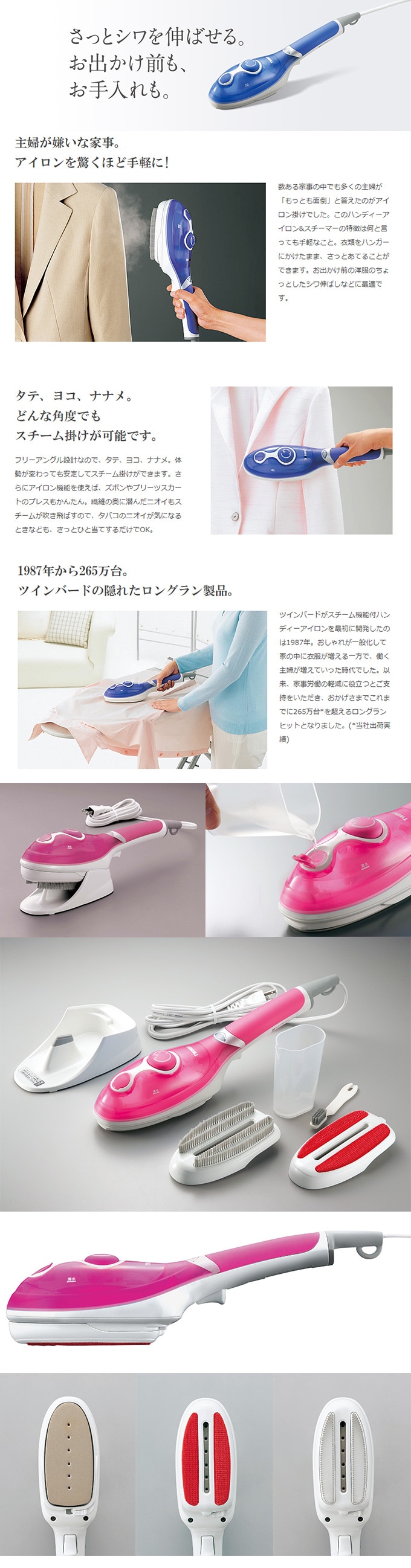 ツインバード(TWINBIRD)/ハンディーアイロン&スチーマー (ピンク)/SA-4084P|主婦が嫌いな家事。アイロンを驚くほど手軽に!
