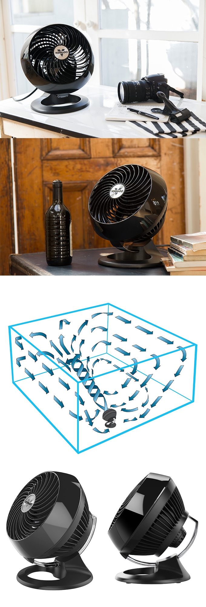 ボルネード(Vornado)/サーキュレーター モダンモデル (6〜14畳用) ブラック/360-JP Black|空気を入れ替える。インからアウトへ、アウトからインへ!