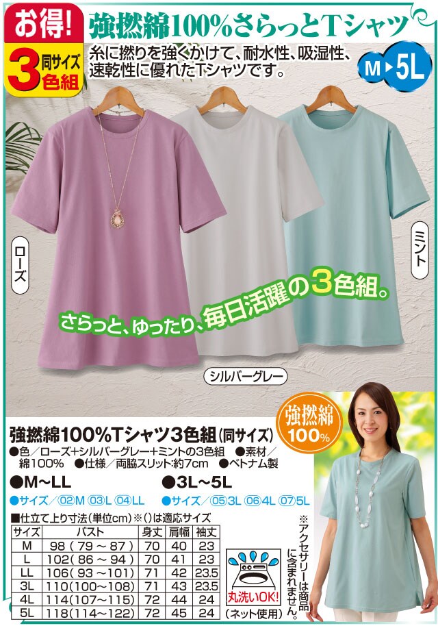 [LLサイズ]強撚綿100%Tシャツ3色組 | 強撚綿100%のさらっとTシャツ!糸に撚りを強くかけた、耐水性、吸湿性、速乾性に優れたTシャツです。