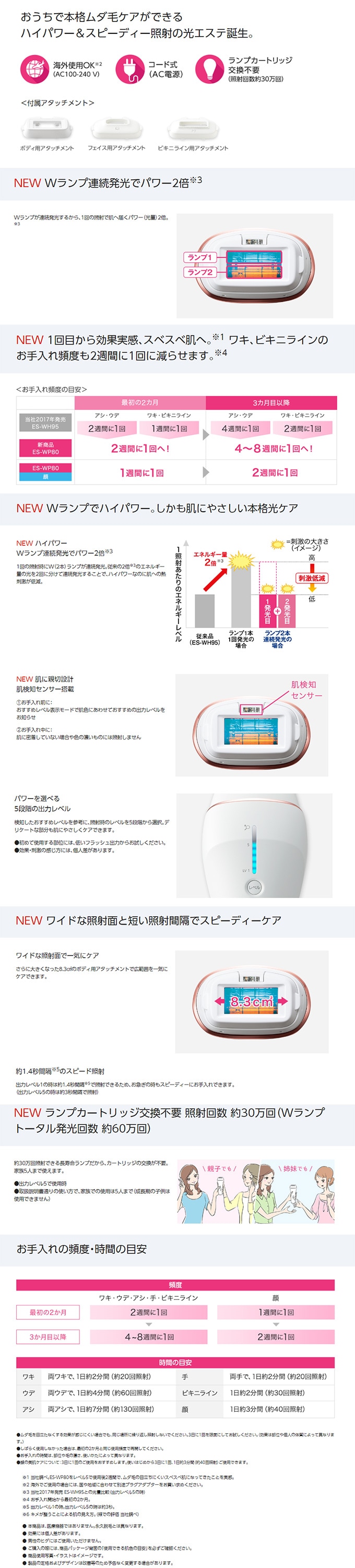 パナソニック(Panasonic)/光美容器 光エステ <ボディ&フェイス用>ピンク調/ES-WP80-P|強さと速さの光エステ。1回目から効果実感、スベスベ肌へ※1