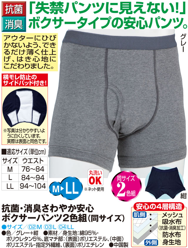 抗菌・消臭!失禁パンツに見えない!ボクサータイプの安心パンツ。
