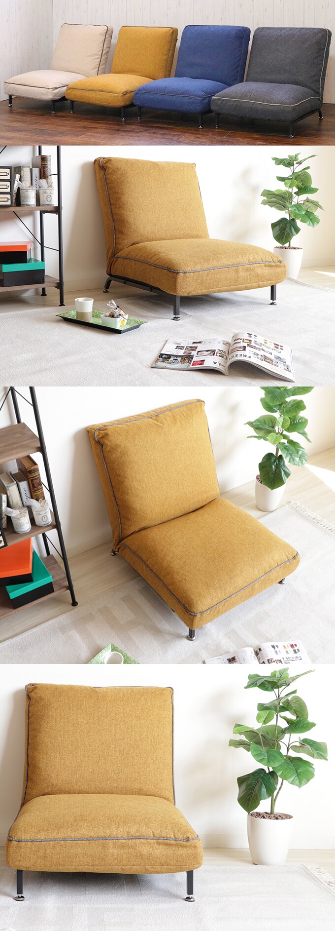 [イエロー]【ハルモニア】スチールレッグソファ | ゆったり座れるワイドなサイズ感・起き上がりやすい座面高さのローソファ。42段階フリーロックギアなので狭い場所でも楽々角度調節可能。
