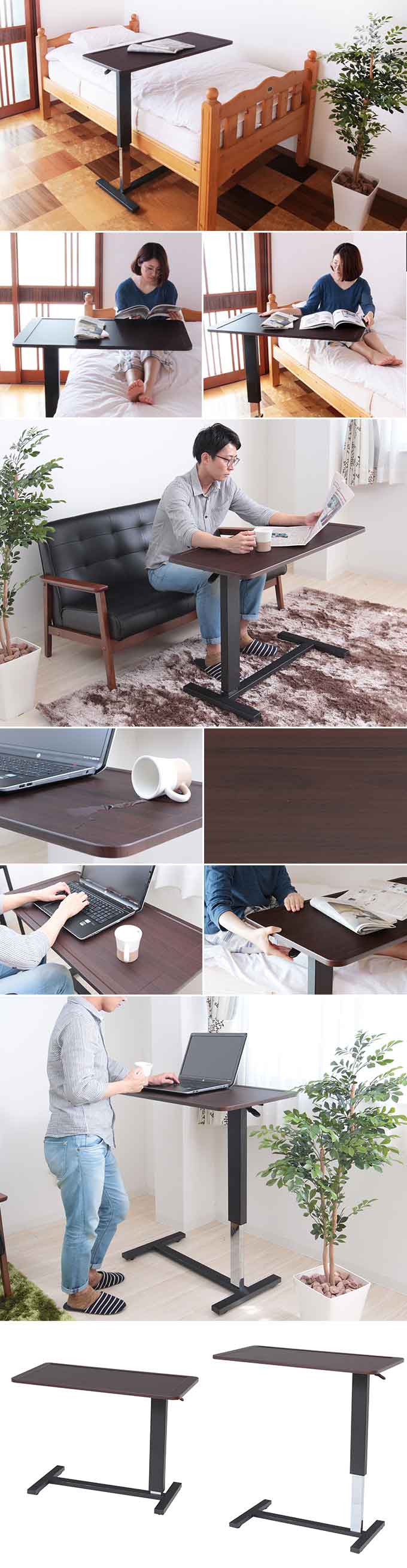 [ファロン]昇降テーブル | 立ちながら作業するのに便利です。デスク横に補助机としても使えます。ベッドのサイドテーブルとしても使用可能。キャスター付きなので移動も楽々! 組立品