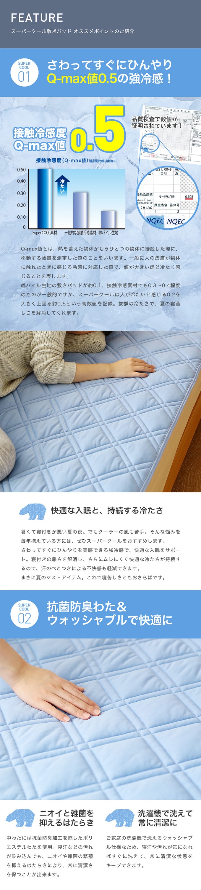 強冷感スーパークール敷パッド (Q-MAX0.5)/シングル|夏のマストアイテム!抜群の冷たさで、今年の夏はぐっすり快適に!