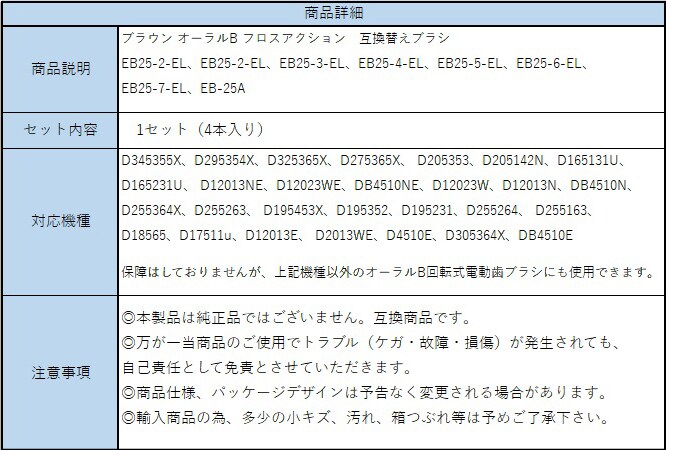 [12本セット]互換替えブラシ / EB-25 | 定期交換でスッキリデンタルケア☆奥歯の届きにくい所、見えない歯垢もがっちり落とす!