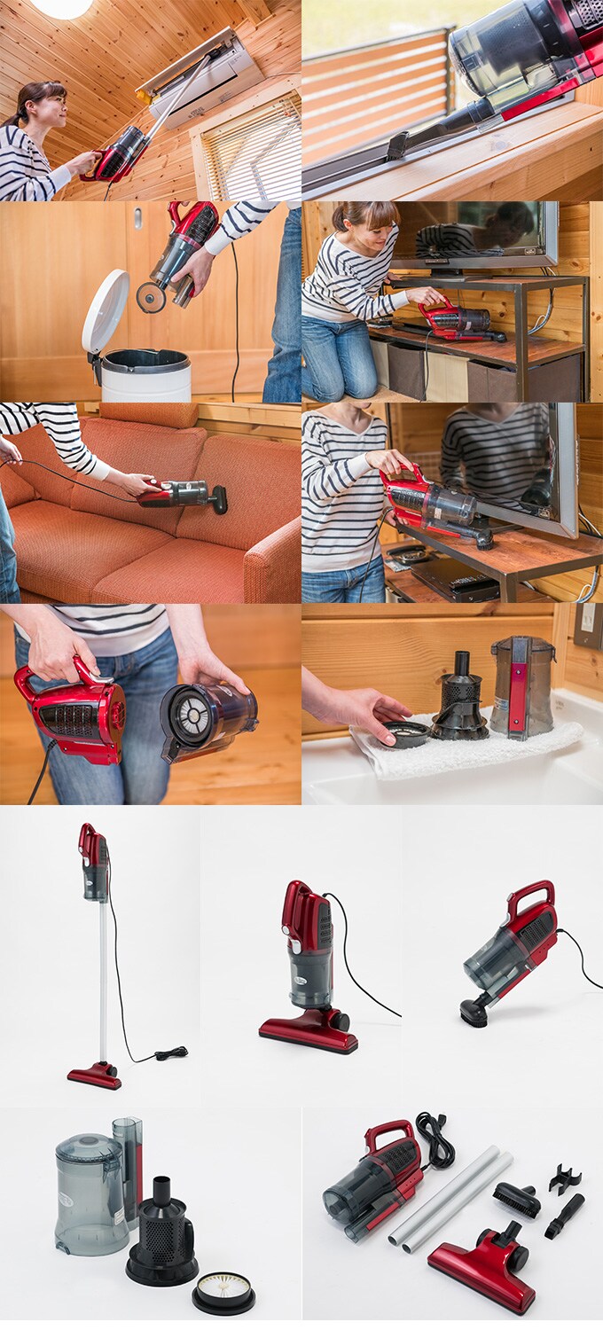Hi-Rose/サイクロン式スティック型2Wayクリーナー/HR-SC3000-RD|超軽量、コンパクトサイズ、ハイパワーの吸引力がゴミをぐいぐい吸い込む!