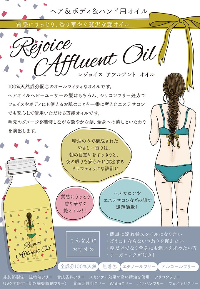 ヘアオイルヘビーユーザーの髪はもちろん、シリコンフリー処方でフェイスやボディにも使えるお肌のことを一番に考えたエステサロンでも安心して使用いただける万能オイルです。