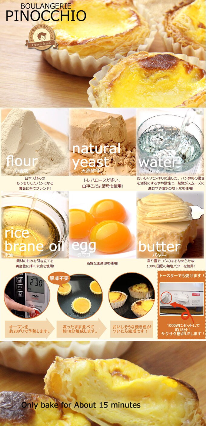 あっさりとした甘さのパン屋さんのエッグタルトを一度お試しください!保存料等不使用です。