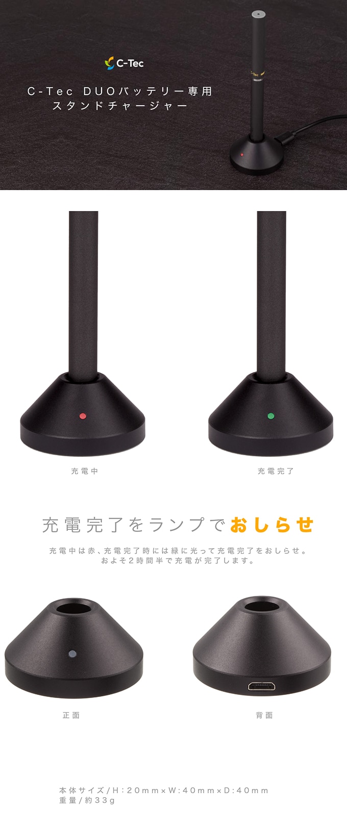 C-Tec (シーテック)/C-Tec DUO (充電式) 専用スタンドチャージャー/CTEC-STCG-BLK | デスクに置いてもスタイリッシュ!無駄のないシンプルな充電器