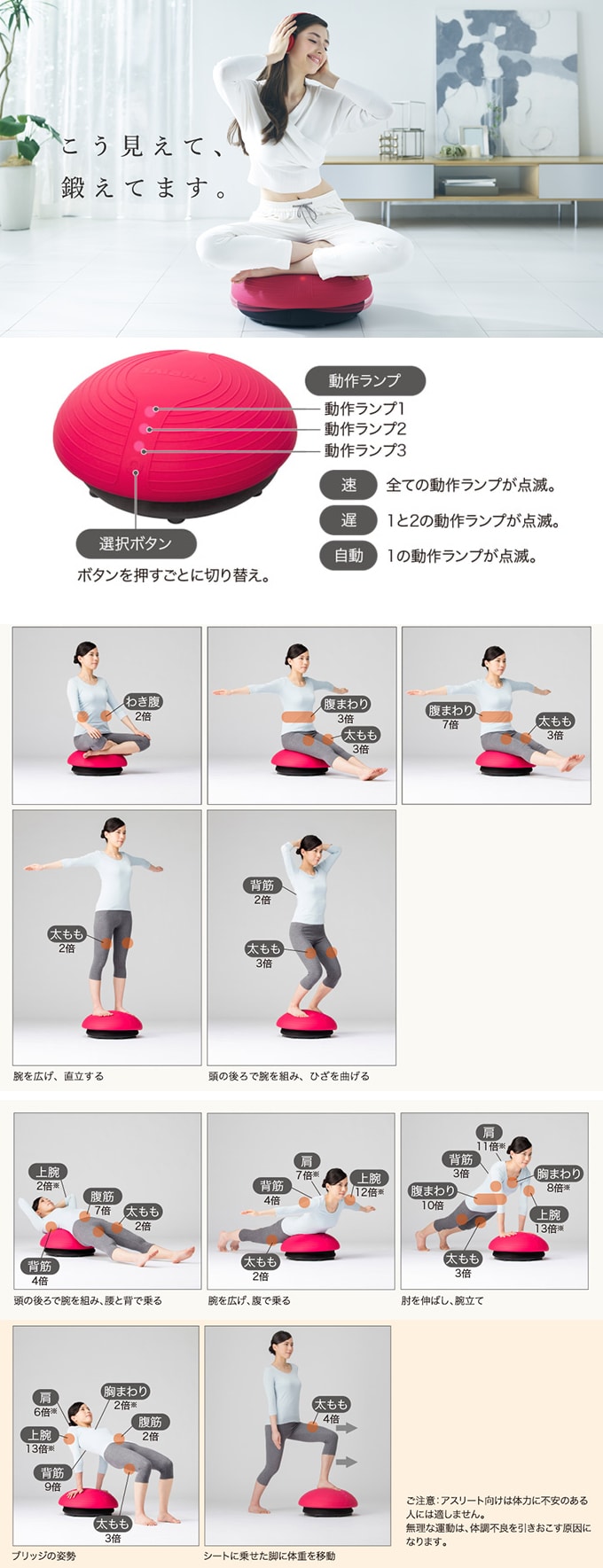 ・慣れないうちや、体力に自信のない人は、足を床につけて使用してください。
