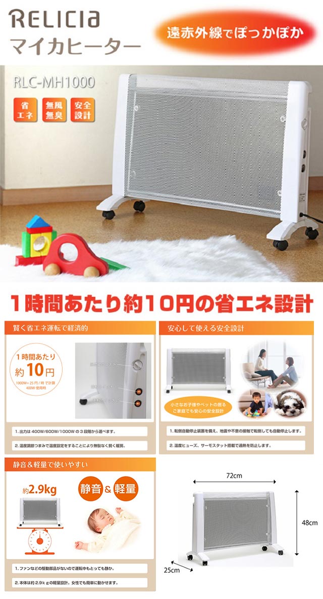 マイカヒーター RLC-MH1000 | 安全設計!遠赤外線でぽっかぽか♪パネルヒーター