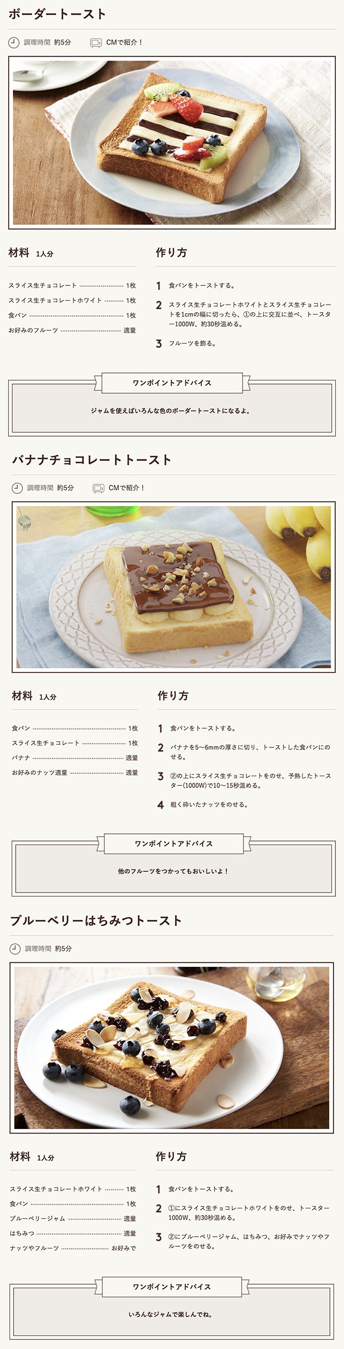 生クリームのコクと濃厚なチョコレート感が楽しめる生チョコレートがスライスタイプになりました。「のせて」「巻いて」「包んで」など様々な使い方ができます。