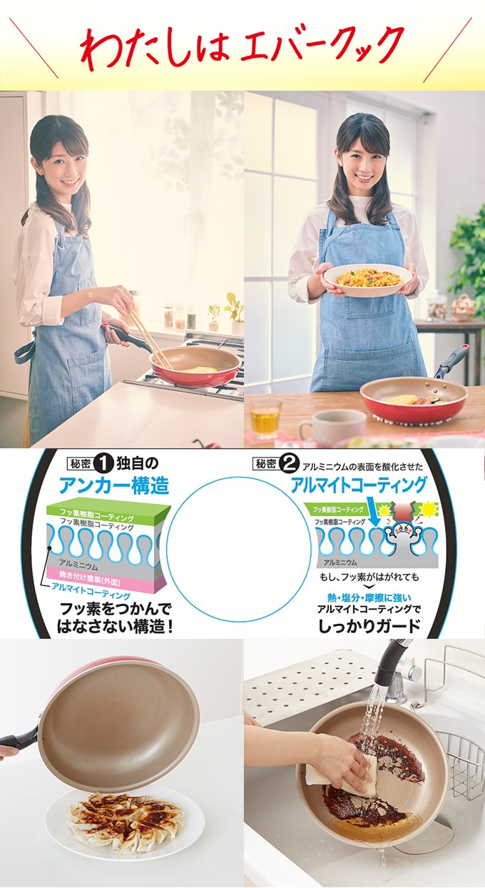 evercookは独自の構造により、”こびりつきにくさ”が長持ち!全商品(保証付き)の“ずっと使いたくなる”フライパンです!!