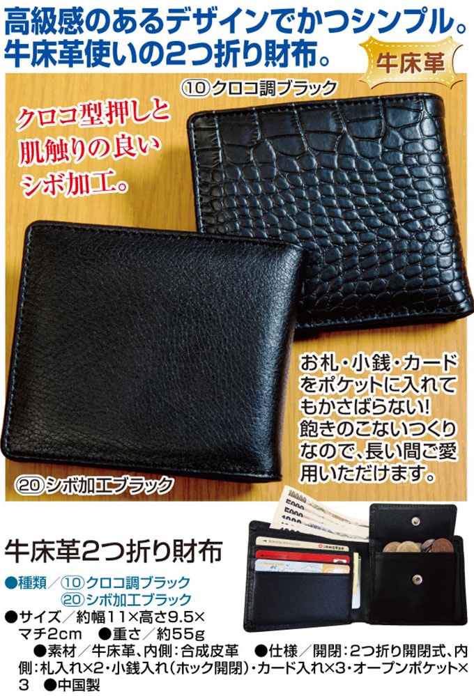 - [シボ加工ブラック]牛床革2つ折り財布(a1273020)