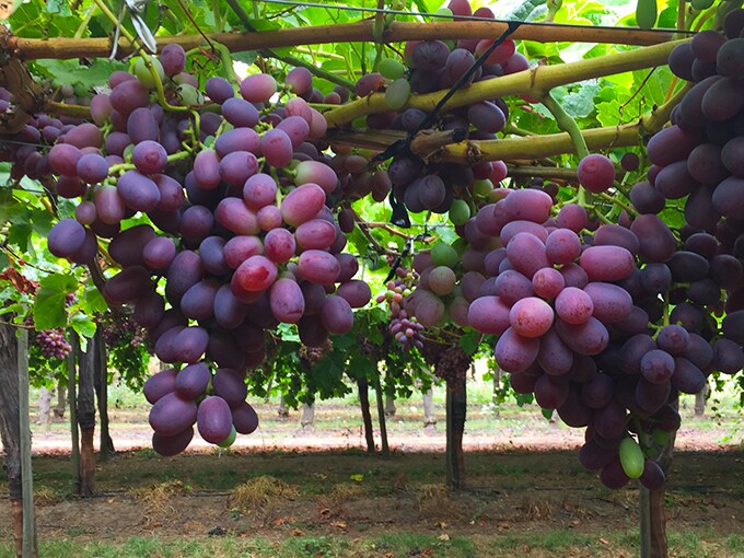 グレープの皮に白く付着しているものはグレープの糖分ですので、品質には問題ございません。