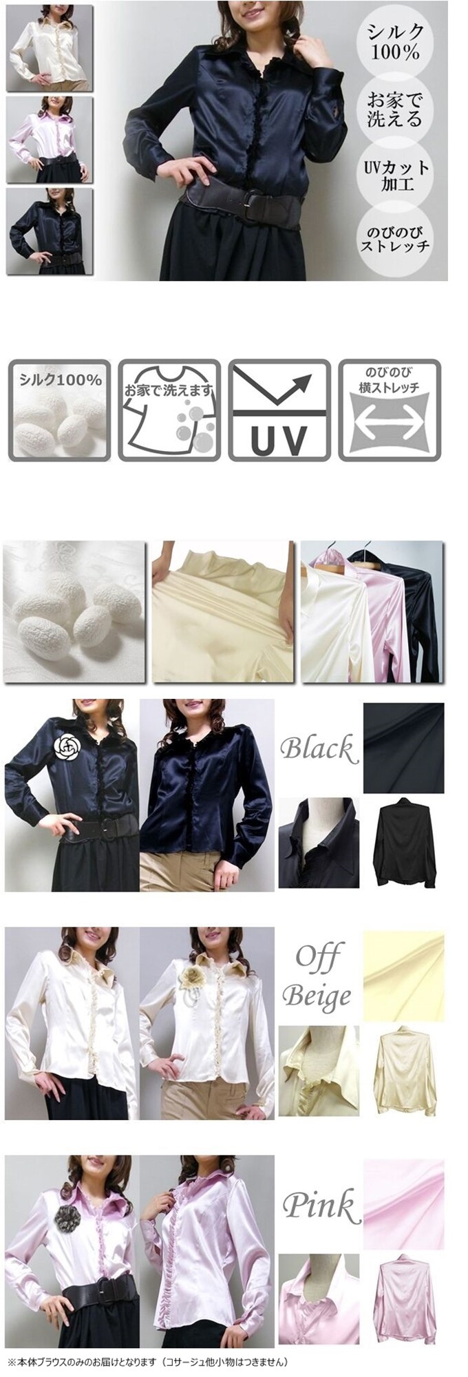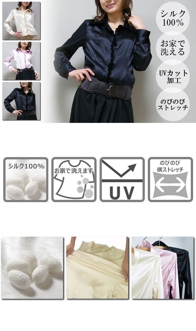 [ピンク/Mサイズ]お家で洗えるシルクストレッチブラウス | <ウォッシャブル・ストレッチ・UVカット>のうれしい機能をシルクの上質感漂うブラウスにプラス♪