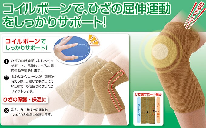 [ベージュ/M-L] 屈伸らくらく膝サポーター | コイルボーンで、ひざの屈伸運動をしっかりサポート!!
