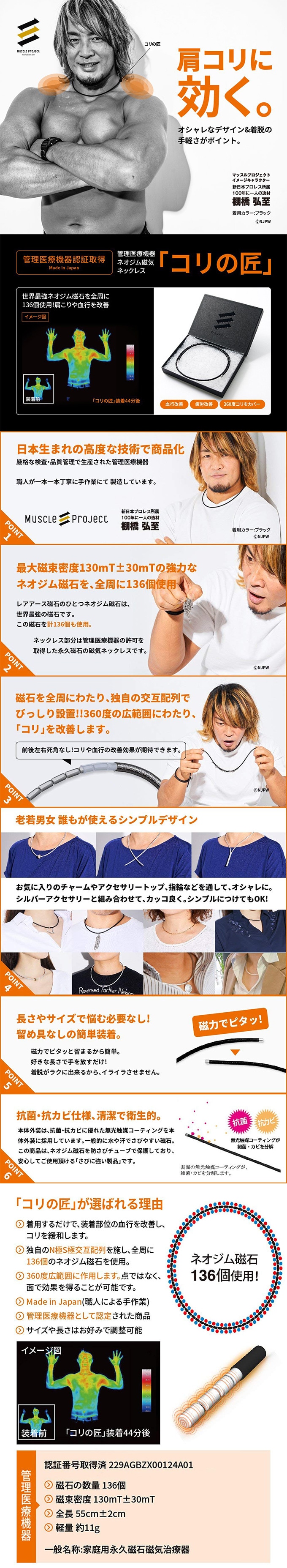 [ブラック]Muscle Project マッスルプロジェクト 磁気ネックレス コリの匠|オフィスやご自宅、お出かけに。いつでもどこでも使えます。