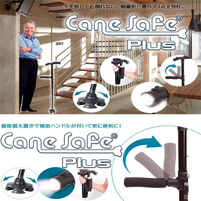 [ロング]ケーンセーフ プラス Cane Safe Plus 折りたたみ杖|頑丈なのに軽くてコンパクト!折りたたみ式の杖で持ち運びにも便利!
