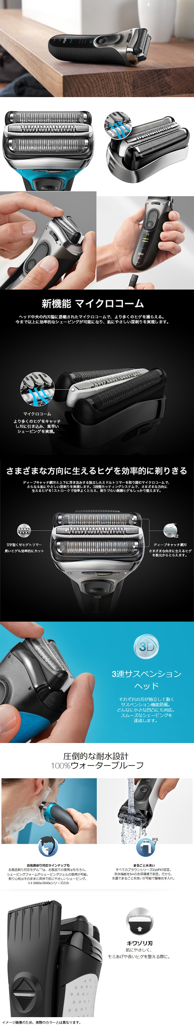 ブラウン シリーズ3はより多く*のヒゲを取り込む3カットシステム+マイクロコーム、それぞれの刃が独立して動く3連サスペンションヘッドシステムを搭載した電気シェーバー。だから、肌にやさしい深剃りを達成。