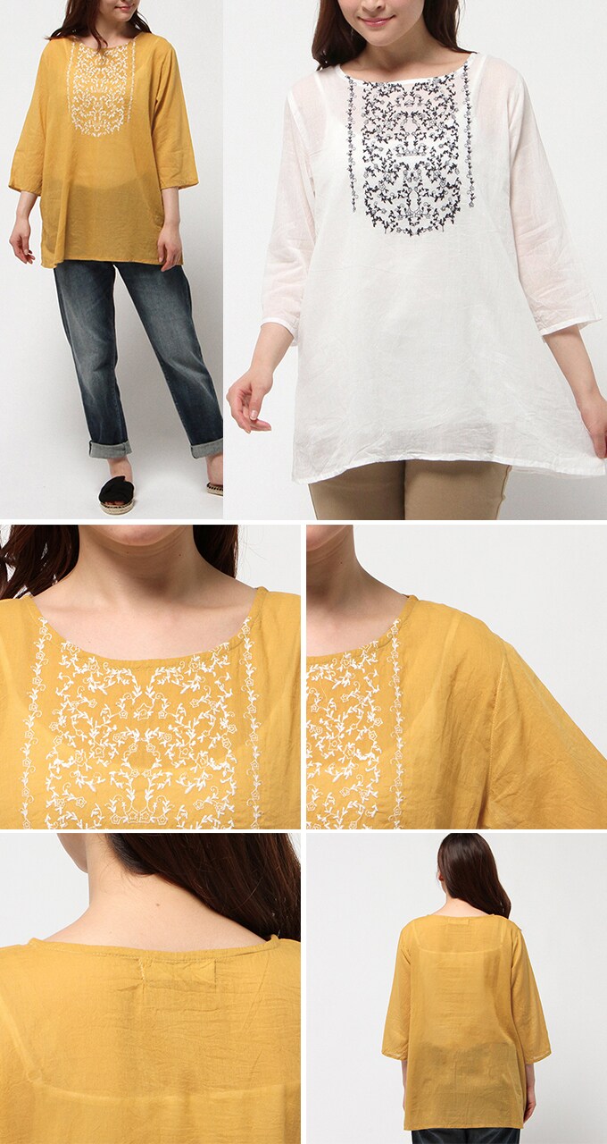 ちょっぴりエスニックな雰囲気の刺繍をあしらった、繊細でおしゃれなブラウス。
