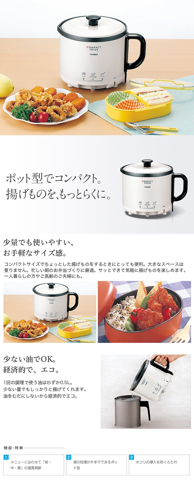 ツインバード(TWINBIRD)/コンパクトフライヤー (パールホワイト)/EP-4694PW|ポット型でコンパクト!揚げ物を、もっとらくに!忙しい朝のお弁当づくりに最適!サッとできて気軽に揚げものを
