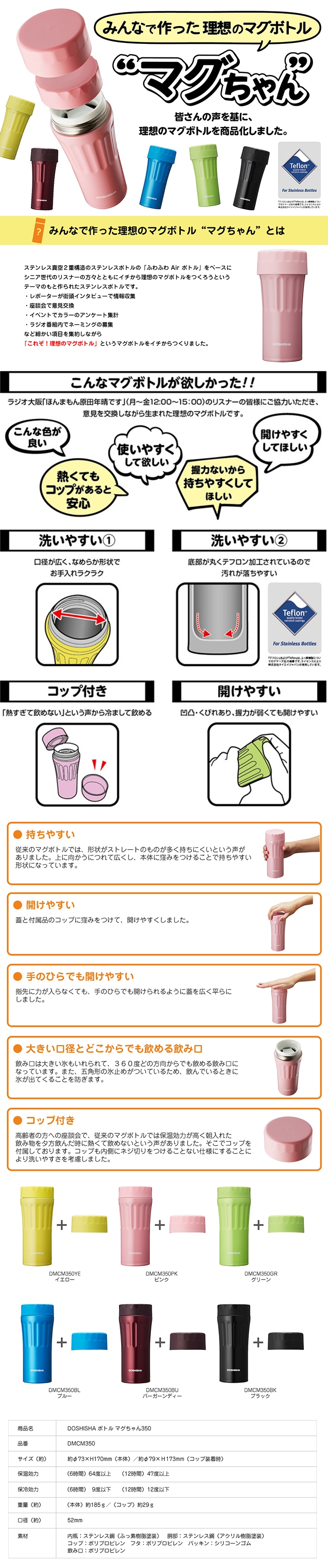 [グリーン/350ml]DOSHISHA(ドウシシャ)/水筒 マグちゃん ボトル/DMCM350GR | 使いやすさを追求!みんなの声をもとに作った理想のマグボトル!