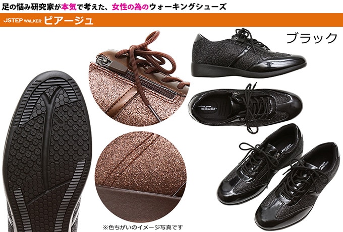 2足セット<23.5cm>JSTEP Walker ビアージュ ブラック 23.5cm | 歩く時の「ずれる」「ぶれる」「滑る」を解決!足の悩み研究家が本気で考えた女性の為のウォーキングシューズ!