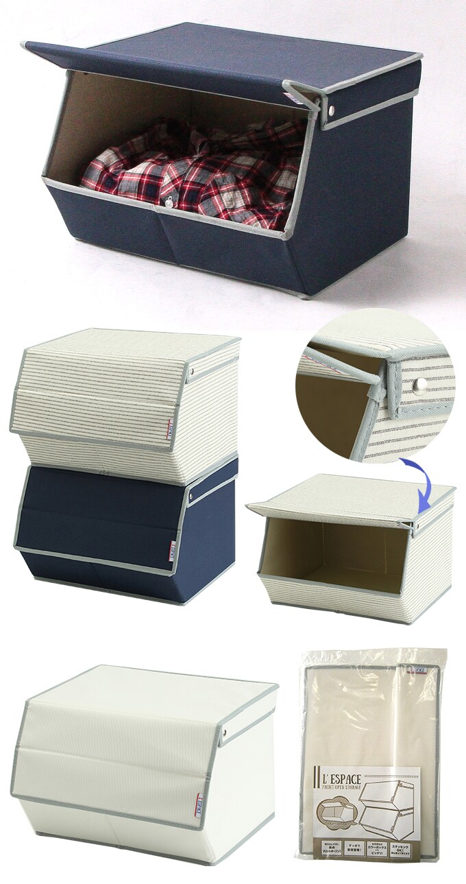 3点セット[ネイビー]ふた付き収納ボックス フロントオープンストレージ | 取り出しやすい斜めフロントオープン!積み重ねて使える!お部屋に合わせて選べる3色展開。すっきり整理整頓◎