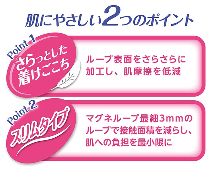 ループ表面をさらさらに加工し、肌摩擦を低減しました。
