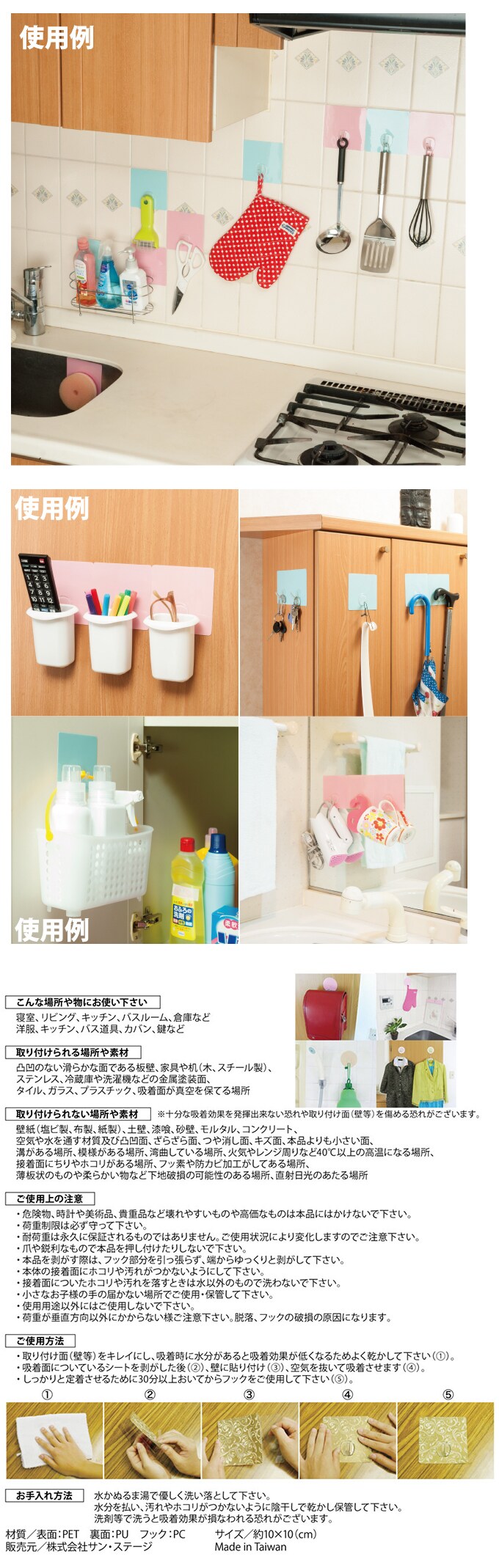 - 計20枚[アクア]繰り返し使える吸着フック/10枚入り×2