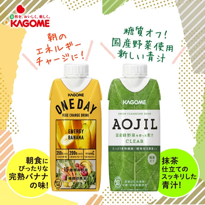 15種類の野菜と6種類のフルーツを使用し、完熟バナナの味わいで飲みやすく仕上げた植物性チャージ飲料です。1日に必要な野菜350g分とフルーツ200g分を使用しています。1日分のビタミンCがしっかり摂れ、素材由来の飲み応えのある性状なので、お腹を満たしながら朝の栄養とエネルギー補給をサポートします。