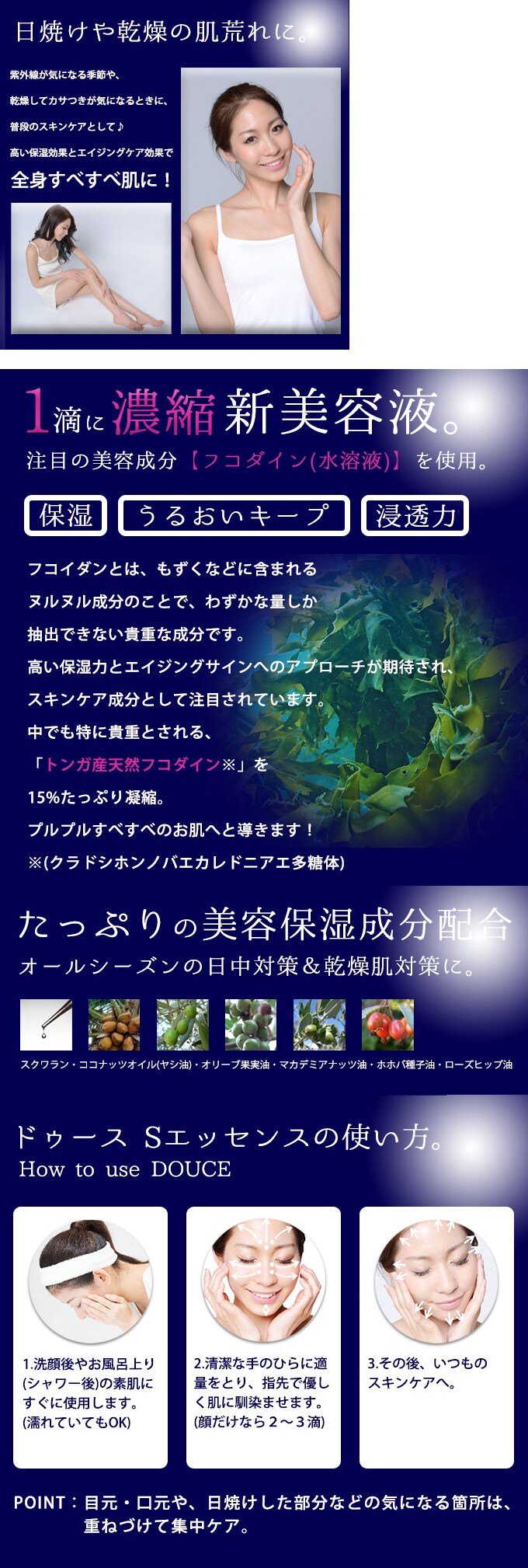 紫外線対策・乾燥対策にオールシーズン使える、潤い美容エッセンスを是非お試しください!