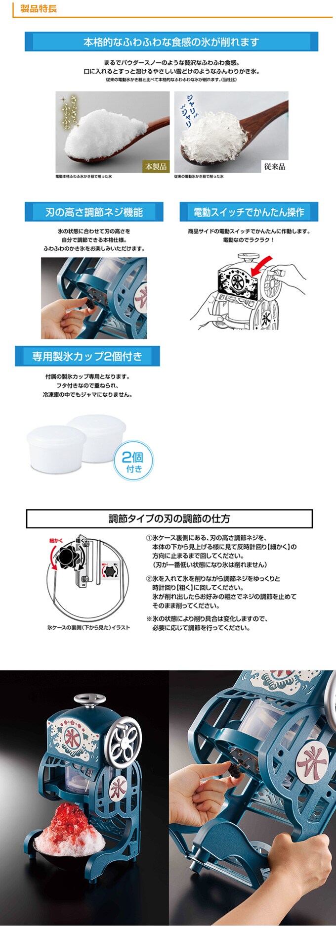 口の中ですっととけるような、雪のような本格的なふわふわ氷を作ることができます。