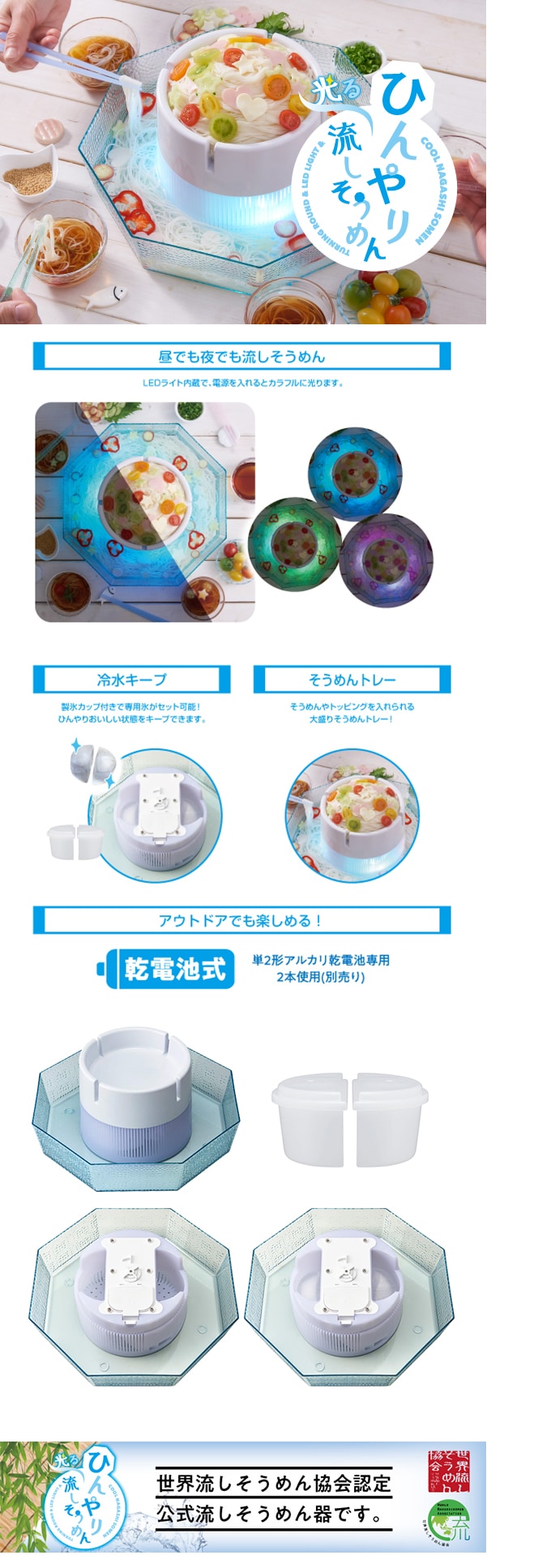 夏に最高、ひんやりそうめん。専用氷内臓でひんやり、光って回る流しそうめん♪