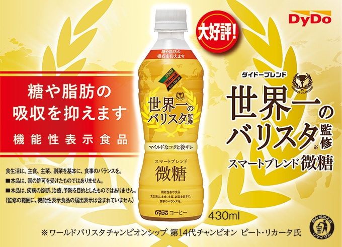 【数量限定】ダイドー スマートブレンド微糖 世界一のバリスタ監修PET430ml(24本+24本) | コクと後キレが特徴のおいしいコーヒーを、食事の糖や脂肪の吸収を抑える機能性表示食品で提供
