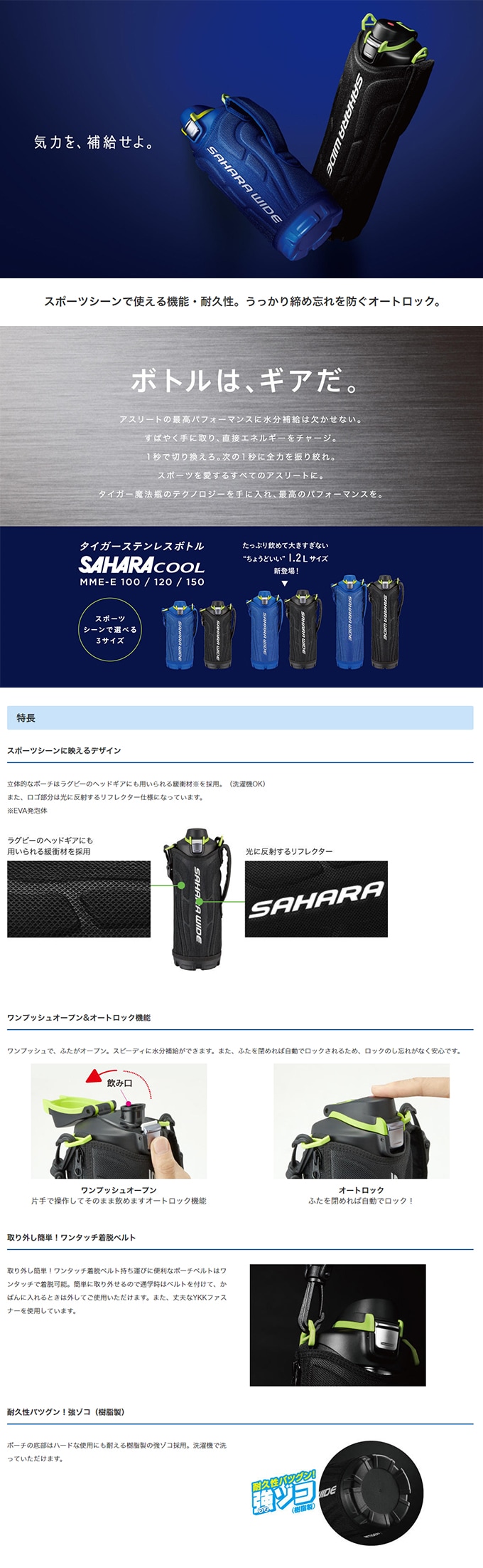 [ブラック/1.5L]タイガー魔法瓶(TIGER)/サハラクール (保冷用) ステンレスボトル/MME-E150(KN)|気力を、補給せよ。スポーツシーンで使える機能・耐久性!