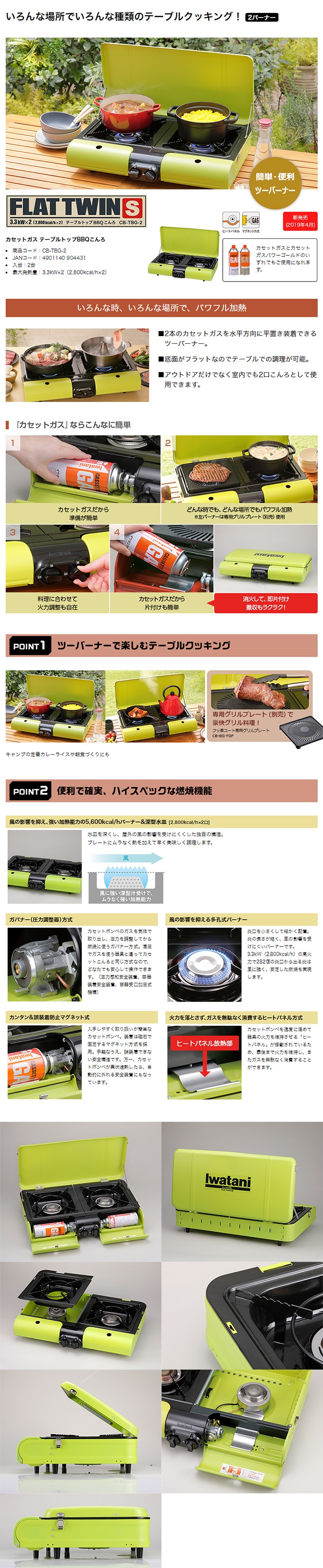 イワタニ/カセットガス テーブルトップBBQこんろ フラットツイン・S/CB-TBG-2 | いろんな場所でいろんな種類のテーブルクッキング!アウトドアだけでなく室内でも2口こんろとして使用可能!