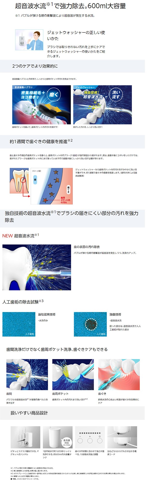 Panasonic(パナソニック)/口腔洗浄器 ジェットウォッシャー ドルツ(白)/EW-DJ71-W|自技術 “超音波水流” でブラシの届きにくい部分の汚れを強力除去!!