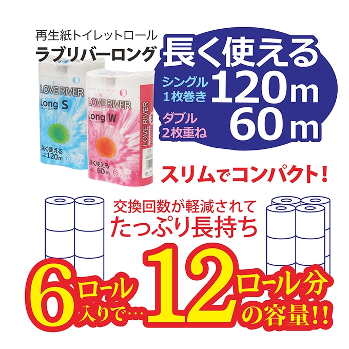 6ロール×8パック / ラブリバーロング シングル | 長巻だから、ロール交換回数軽減!