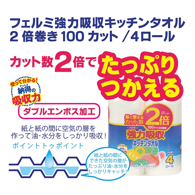 - 4ロール×12パック / 倍巻フェルミキッチンタオル 100カット