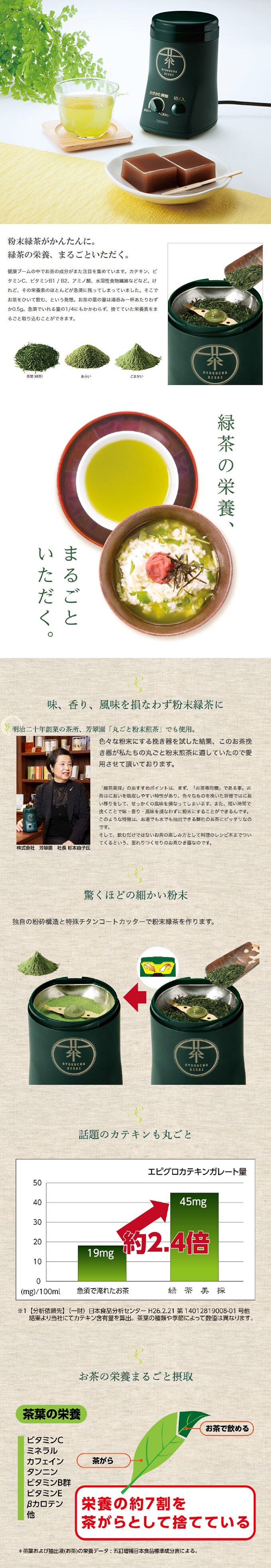 ●粉末緑茶がかんたんに。緑茶の栄養、まるごといただく。