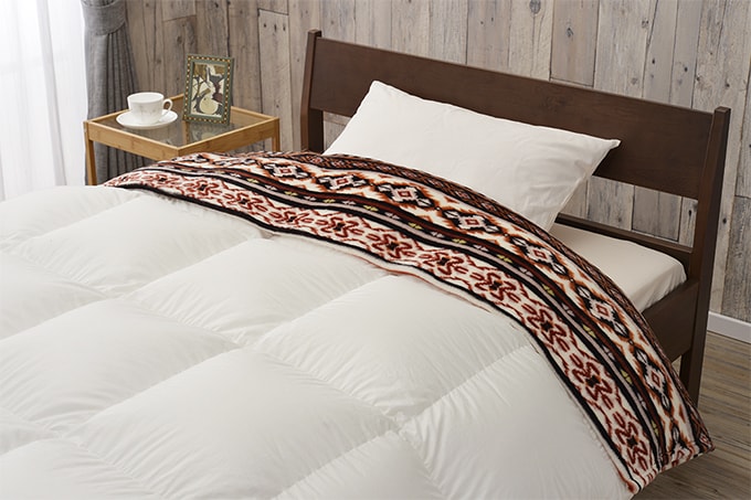 ◆ニューマイヤーと呼ばれる1枚仕立てで、ふんわり軽いのが特徴。ほかの掛けふとんと重ねて使用しても、重さを感じにくいです。
