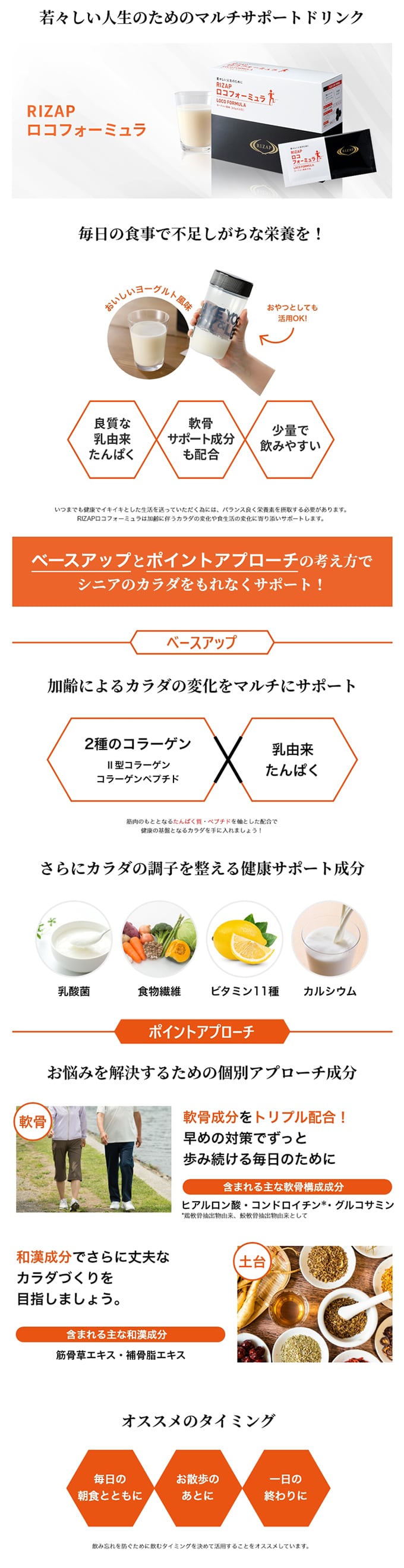 活力不足を感じる人、歩くのがゆっくりな人、テキパキ動き回りたい人。そんな方たちにRIZAPから手軽に飲みやすいプロテインの提案です。不足しがちな栄養素をバランスよく補い、活き活きとした毎日のためのお手伝いをします。