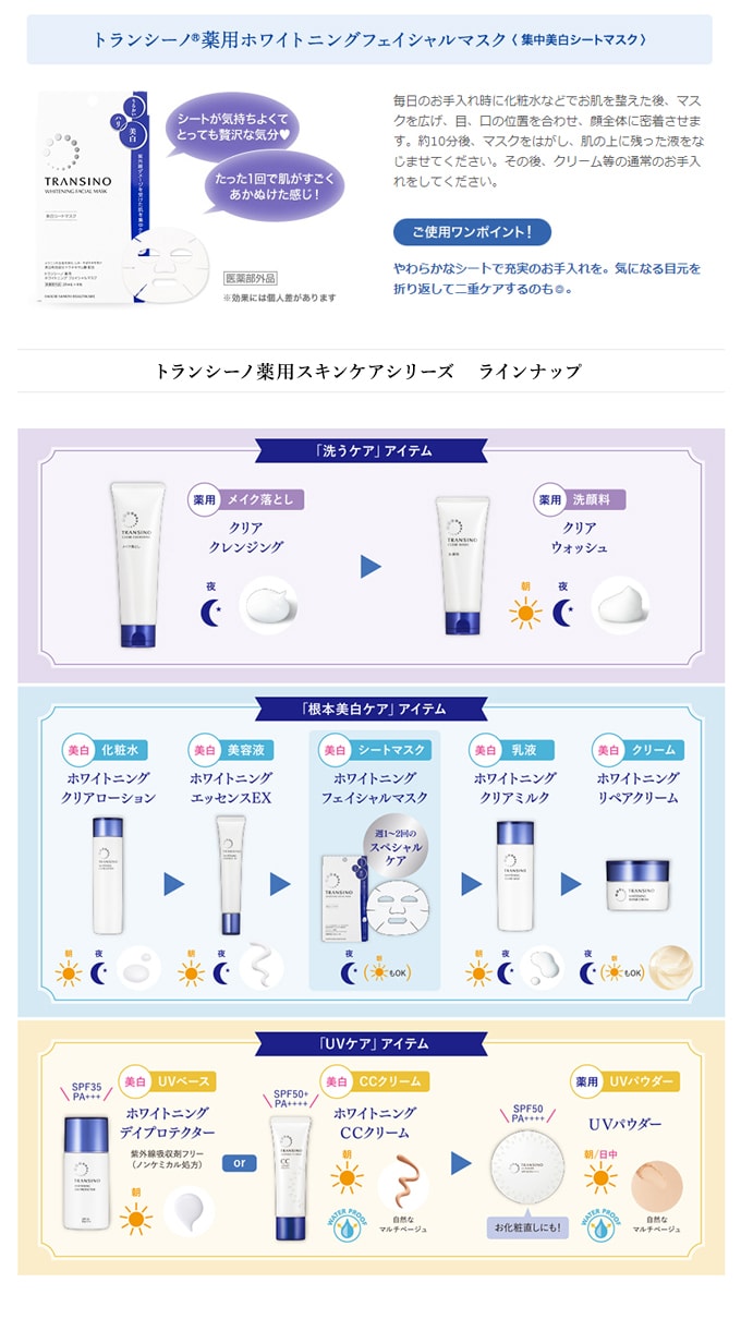 - トランシーノ薬用ホワイトニングフェイシャルマスク