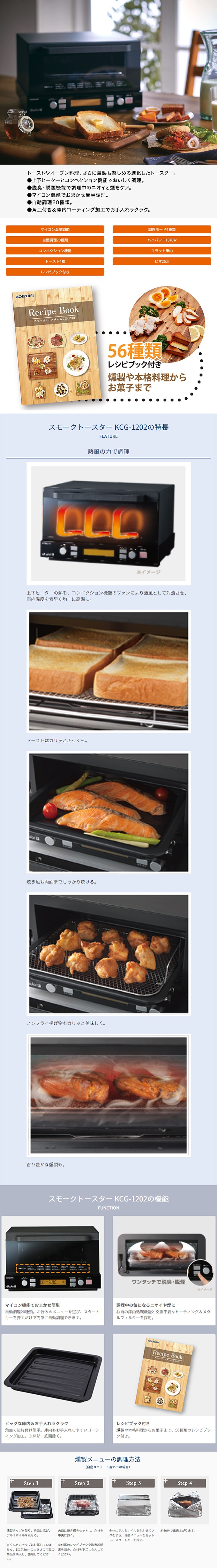 KOIZUMI/スモークトースター/KCG-1202-K | トーストやオーブン料理、さらに薫製も楽しめる進化したトースター!