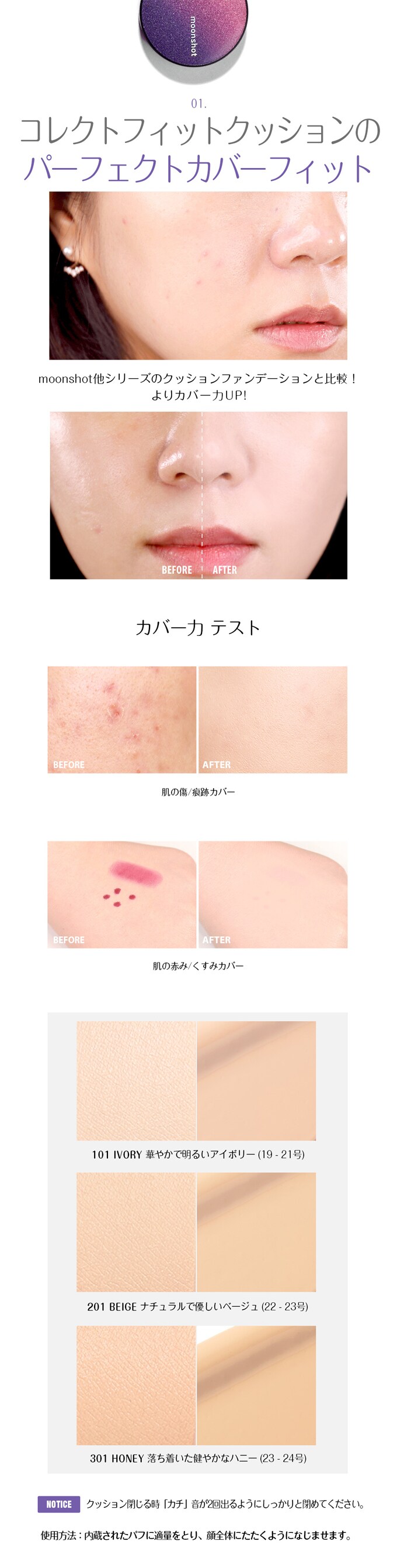 moonshot Correct fit Cushion 101 SPF50+ PA+++ | 重ね塗りしてもお肌に密着!
