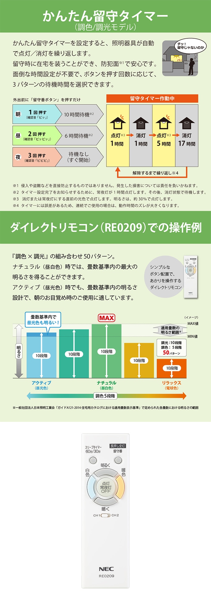◆あかりで安心を届ける「かんたん留守タイマー付」