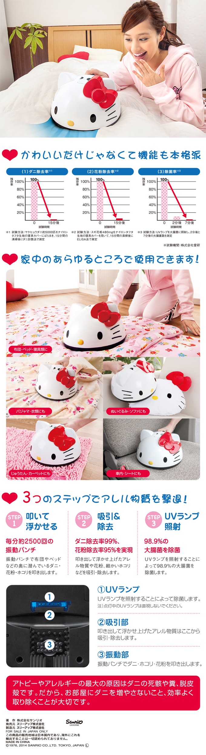 スリーアップ/充電式布団クリーナー 「ハローキティ」/KT-650|かわいいだけじゃなくて機能も本格派!家中のあらゆるところで使用可能!
