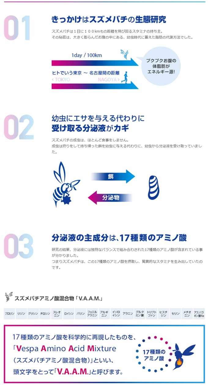 スズメバチアミノ酸「V.A.A.M.」3000mgにコエンザイムQ10とL-カルニチンを配合。